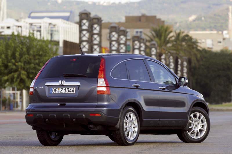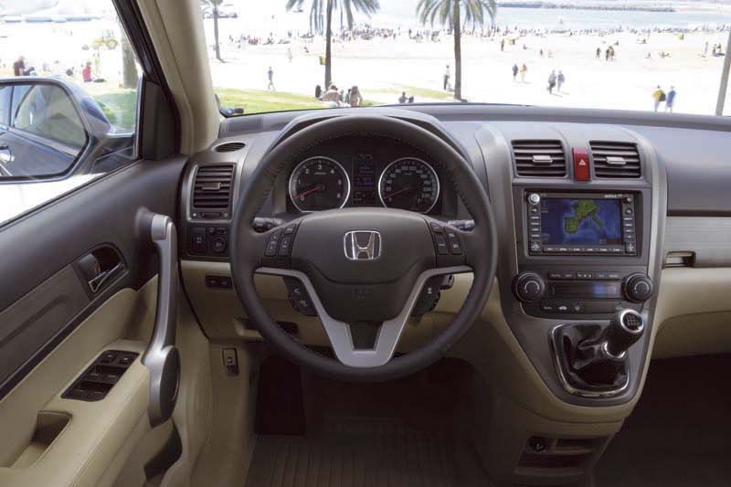 Daneben wartet der auch in seiner jüngsten Ausführung weiterhin kompakte, in den Abmessungen sogar um elf Zentimeter auf 4525 mm in der Länge geschrumpfte (weil vom Ersatzrad an der Heckklappe befreite) CR-V mit einem umfangreichen Komfort- und Sicherheitspaket auf: ABS und elektronische Bremskraftverteilung, aktive Kopfstützen vorn, Bremsassistent sowie VSA (die Honda-Diktion für das elektronische Stabilitätsprogramm ESP) inklusive Anhängerstabilisierungsprogramm und sechs Airbags sind in allen Modellvarianten serienmäßig. Optional kann der CR-V in der Ausstattungsvariante Executive für 2.950,- € Aufpreis mit dem Kollisions-Warn- und Schutzsystem CMBS ausgestattet werden – ein Novum im Segment der Kompakt-SUV, war die Technologie in dieser Form doch bislang eher der Oberklasse vorbehalten. CMBS überwacht mittels eines Radars im Kühlergrill die Verkehrssituation vor dem Fahrzeug, warnt den Fahrer sobald der Abstand zum vorausfahrenden Fahrzeug gefährlich gering wird und leitet im Ernstfall sogar eine Notbremsung mit rund 60 Prozent der Bremskraft ein.