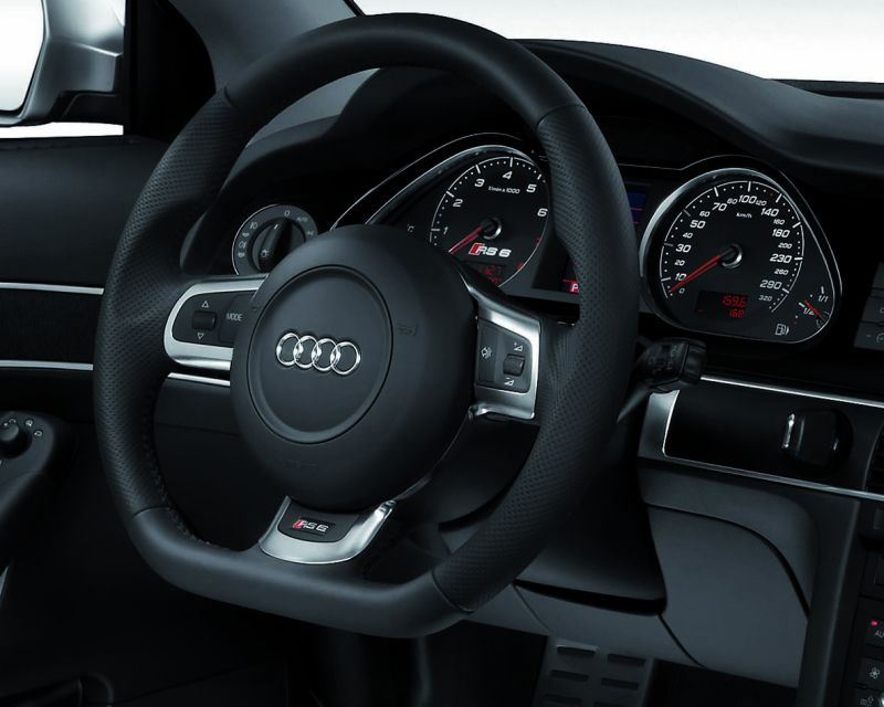 Der neue Audi RS 6 Avant - High-Performance auf neuem Niveau - Seite 6Der Innenraum des neuen RS 6 schafft die Verbindung aus sportlicher Eleganz und Exklusivität. Die für Audi typische, hohe Verarbeitungsqualität wird ergänzt durch eine ebenso sportliche wie elegante Kombination hochwertiger Materialien. Carbon, Aluminium, Leder oder Alcantara. Zentrales Bedienelement ist und bleibt das Lenkrad: Beim RS 6 hat der Käufer die Wahl zwischen dem Multifunktions-Sportlenkrad im 3-Speichen-Design und dem besonders stark ausgeformten und unten abgeflachten RS-Sportlenkrad, ebenfalls mit Multifunktions-Bedienung und Schaltwippen für das Getriebe. Das Cockpit wurde im typischen RS-Design ausgeführt und um die Ladedruckanzeige ergänzt. Über das Fahrerinformationssystem können Anzeigen zu Ladedruck, Öltemperatur und Lap-Timer aufgerufen werden. Die Dekoreinlagen sind aus Carbon gefertigt und mit Aluminium eingefasst, die Cockpitblende glänzt in schwarzer Klavierlack-Optik. Für weitere Glanzpunkte im Innenraum sorgen die Aluminium-farbenen Tasten am MMI-Bedienterminal auf der Mittelkonsole, die gefrästen Türöffner oder die Sportpedale in Aluminium-Optik. Die stark profilierten Sportsitze sind mit einer Kombination aus Leder und Alcantara mit eingeprägtem RS 6-Schriftzug bezogen oder wahlweise komplett in Leder der Qualitäten Seidennappa oder Valcona gehüllt. Natürlich gehört zu diesem Hochleistungs-Automobil auch eine besondere Serienausstattung wie beispielsweise die Audioanlage mit dem kraftvollen Bose Surround-Soundsystem, die Sitzheizung vorne und hinten, das Reifendruck-Kontrollsystem oder das Audi parking system plus. Und mit den vielfältigen Hightech-Optionen der Baureihe Audi A6 lässt sich jeder RS 6 den individuellen Wünschen des Kunden noch perfekter anpassen. Der neue A4 von Audi - erste Fakten im Überblick
