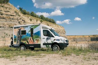 Nicht nur für Enduristen: Seitz Tikro X-Track Plakativ mit einer Enduro auf dem stabilen Heckträger bestückt präsentiert Seitz aus dem schwäbischen Aspach seinen kompakten Tikro X-Track auf Basis des Mercedes Sprinter 4x4. Das hoch bauende und robust wirkende Allrad-Reisemobil ist mit den drei Turbodiesel-Varianten 311, 315 und 318 CDI (= 80 bis 135 kW bzw. 109 bis 184 PS) mit Zuschalt-Allrad zu haben. Für Freunde des permanenten Allradantriebs mit variabler Kraftverteilung via Viskokupplung bietet Tikro die Kastenausbau-Variante auf dem Peugeot Boxer an. Hier arbeitet als Basismotor der bekannte 2,2-l HDI mit 96 kW/130 PS.