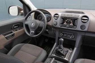 VW Amarok DoubleCab 2.0 BiTDI 4motion – Leitwolf für das Pickup-Rudel / Seite 2Die Fahrleistungswerte sind in den beiden 4motion-Ausführungen – ob Zuschalt- oder Permanent-Allrad – identisch: Bis Tempo 80 vergehen laut Werksangaben 7,7 Sekunden, bis Tempo 100 sollen es 11,1 Zeigertakte sein, für den Zwischensprint von 80 auf 120 km/h sind 11,0 Sekunden veranschlagt. Mit einer weniger hakeligen Kulisse des Sechsgang-Schaltgetriebes, die zudem jedes Einrasten einer Zahnradpaarung mit einem lauten „Klack“ meldet, würde der Vorwärtsdrang wohl noch ein paar Wimpernschläge zugiger ausfallen. Sei's drum, schließlich wurde der Amarok nicht als Sport-, sondern als Nutz- und Geländefahrzeug geboren. Die Offroad-Eigenschaften darf er in einem anspruchsvollen Testgelände des österreichischen Automobilclubs ÖAMTC südlich von Wien beweisen. Hier bewegen wir zunächst mal die Basisvariante mit klassischem Zuschalt-Allrad durch Verschränkunspassagen, Wasserlöcher sowie über Auf- und Abfahrten. Keine Bedenken kommen da von vorne herein in puncto Robustheit auf, die konservative Konstruktion mit Leiterrahmen, Einzelradaufhängung vorne sowie blattgefederter Heavy-Duty-Starrachse hinten (drei Haupt- und zwei Zusatzfedern für hohe Zuladung) wird die Formationen sicher verkraften. Eher Bedenken mag man da schon angesichts der Abmessungen dieses Doppelkabiners haben, fallen sie doch deutlich größer aus als jene der bei uns kursierenden Wettbewerber: Bis zu 1.954 mm Breite (ohne die Außenspiegel) und über 5,25 m Länge bei bei fast 3,10 m Radstand. Der vordere Böschungswinkel ist mit 28 Grad noch im Rahmen, der hintere fällt mit exakt 23,6 Grad jedoch etwas flach aus. Der Rampenwinkel bewegt sich mit 23 Grad im Klassenrahmen. Los geht‘s: Den Vorderradantrieb per Fingerdruck auf den Knopf neben dem Schalthebel zugeschaltet, die Geländeuntersetzung auf gleiche Weise eingelegt. Das Fahrwerk ächzt, der Vorderbau taucht schräg ab, ein Hinterrad balanciert in der Luft. Im Leerlauf schraddelt der Amarok durch die Verschränkunspassage. Ebenso souverän wie hier absolviert der Deutsch-Argentinier das Gefälle mittels der aktivierten Bergabfahrhilfe, die das Tempo (unterhalb von 30 km/h) durch sensiblen Bremseingriff konstant hält.