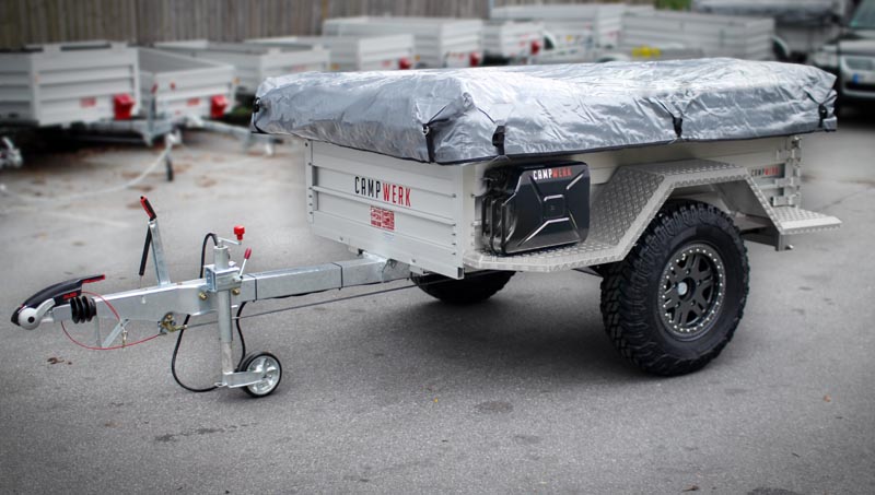 Camp Werk: Preiswerte Variante des Offroad-Anhänger12.07.2012 Das Mülheimer Unternehmen Camp Werk®, Spezialist für Campinganhänger, -zelte und -equipment, hat eine preiswerte Alternative zu seinem Edelstahl Offroad-Anhänger auf den Markt gebracht. Dazu adaptierten die Techniker um Firmenchef Michael Krämer das bewährte Offroad-Chassis und setzten anstelle des Edelstahlaufbaus ein solches aus Aluminium auf. Das Leergewicht des Transportanhängers beträgt mit dem Alu-Aufbau rund 300 Kilogramm, das zulässige Gesamtgewicht liegt bei 1,5 Tonnen. Design und Konzeption entsprechen im wesentlichen der Edelstahlvariante. Damit sind auch die Eckdaten wie 350 mm Bodenfreiheit, 570 mm Wattiefe sowie 27° Böschungswinkel identisch. Die Preisliste beginnt bei 5.990 Euro, der Alu-Anhänger ist somit rund 60 % günstiger als sein Edelstahl-Pendant.