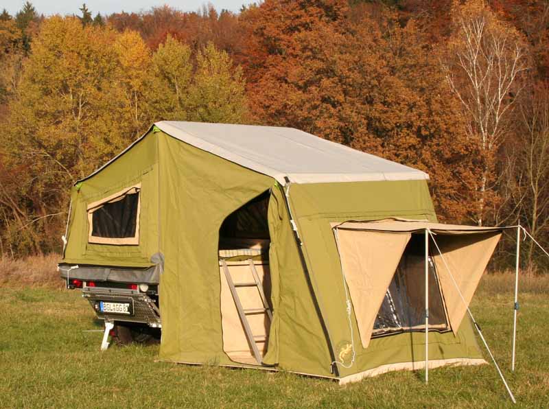 Gordigear: Kompaktes Anhängerzelt von Down Under23.01.2013 Einmal Taiga von Down Under: Dach- und Anhängerzelt-Spezialist Gordigear aus Australien bringt mit dem „Taiga“ sein jüngstes Produkt auf den deutschen Markt. Das so bezeichnete Urlaubsdomizil ist aus robustem Ripstop-Stoff gefertigt und steht mit einem Startpreis von 1.950 Euro in der Liste des hiesigen Importeurs. Dank eines simplen zu händelnden, „One-Pull“ genannten Öffnungssystems soll sich das Anhängerzelt selbst von einer einzigen Person im Handumdrehen ausfalten lassen, verspricht der Hersteller. Unter dem mit einer UV-reflektierenden Beschichtung versehenen Dach, das auf einem leichten Alu-Rahmen baut, eröffnet sich eine Schlaffläche von 1,75 x 2,30 Meter Größe. Damit soll das „Taiga“ vor allem für reisende Paare oder kleine Familien attraktiv sein. Denn für mehr Platzbedarf hat Gordigear ja noch das größere „Savannah“ im Programm. Als Option sind ein Duschraum sowie ein Vorzelt erhältlich, Das „Taiga“ ist komplett mit Trailer oder als Nachrüstsatz für den eigenen Anhänger zu haben.
