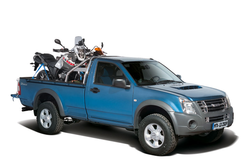 Isuzu D-Max Biker: Der Pickup für Motorradfahrer30.06.2009 Mit dem Motorrad auf der Ladefläche des Pickups auf große Tour gehen – diese Möglichkeit bietet Isuzu nun dank einem entsprechenden Zubehör-Set für seinen D-Max. Mit dem Modell „Biker“ lassen sich Geländewagen und Enduro fahren kombinieren. Viele Motorradfahrer möchten ihr Bike samt Gepäck mittlerweile nicht mehr auf eigener Achse in die Region mit den schönen kurvigen Off- oder Onroadstrecken bewegen. Sie stellen ihre Enduro oder ihr Straßenmotorrad lieber in einen Kastenwagen, auf einen Hänger – oder eben auf die Ladefläche eines allradgetriebenen Pickup. Denn der vermag sie dann auch in entlegenere Regionen zu bringen, frei nach dem Motto: „Voll ist es nur dort, wo auch alle anderen fahren. Spaß habe ich dort, wo ich alleine und ungestört unterwegs bin...“. Diesem Freizeitgedanken entsprechend hat Isuzu für den D-Max Einzel- und Anderthalbkabiner nun ein nach individuellem Wunsch maßgeschneidertes Zubehörpaket mit dem Namen „Biker“ geschnürt, das alle Features zum Transport von einem oder zwei Motorrädern inklusive Zubehör ermöglicht: Dazu gehören eine komplett in Alu ausgeführte Ladewannen-Verkleidung mit Verzurrschienen an der Bordwand sowie auf dem Boden, eine in Rastern längs verstellbare Vorderradhalterung, eine als Heckabschlussgitter und -halterung konzipierte Auffahrrampe sowie ein Überrollbügel. Das Gewicht der Bikes auf der Hinterachse fängt eine Luftfederung inklusive verstärkten Gasdruckdämpfern auf. Und noch einen Vorteil bietet der Transport auf der Ladefläche des D-Max: Nach einem Sturz oder technischen Defekt lässt sich das Bike problemlos auf den eigenen zwei Achsen wieder nach Hause in die heimische Werkstatt bringen. |